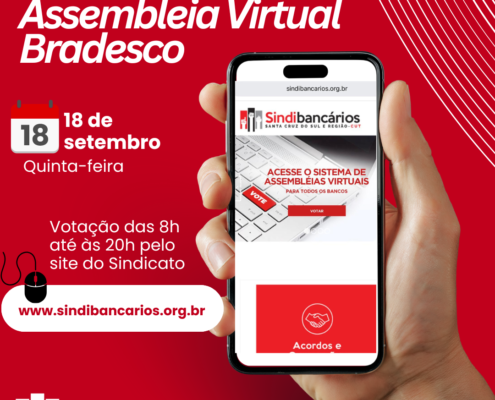 O Sindicato dos Bancários de Santa Cruz do Sul e Região convoca todos os funcionários do Bradesco, sócios e não sócios, da base territorial do Sindibancários, para participarem da assembleia virtual que ocorrerá no dia 18 de setembro,…