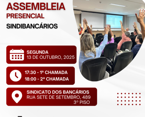 O Sindicato dos Bancários de Santa Cruz do Sul e Região convoca todos(as) os(as) trabalhadores(as) da categoria para participarem da Assembleia Geral Extraordinária, que será realizada no dia 13 de outubro, na sede do Sindicato (Rua Sete…