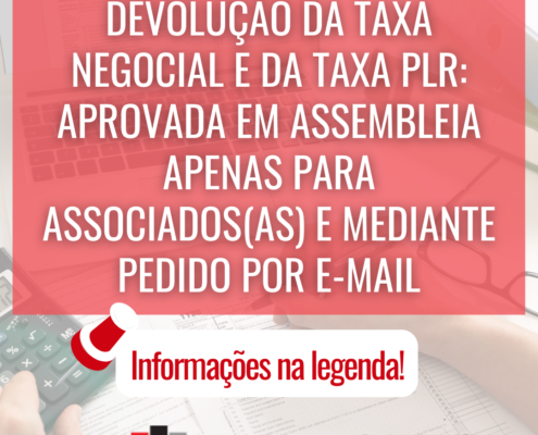 Devolução da taxa negocial e da taxa PLR: aprovada em assembleia apenas para associados(as) e mediante pedido por e-mail
