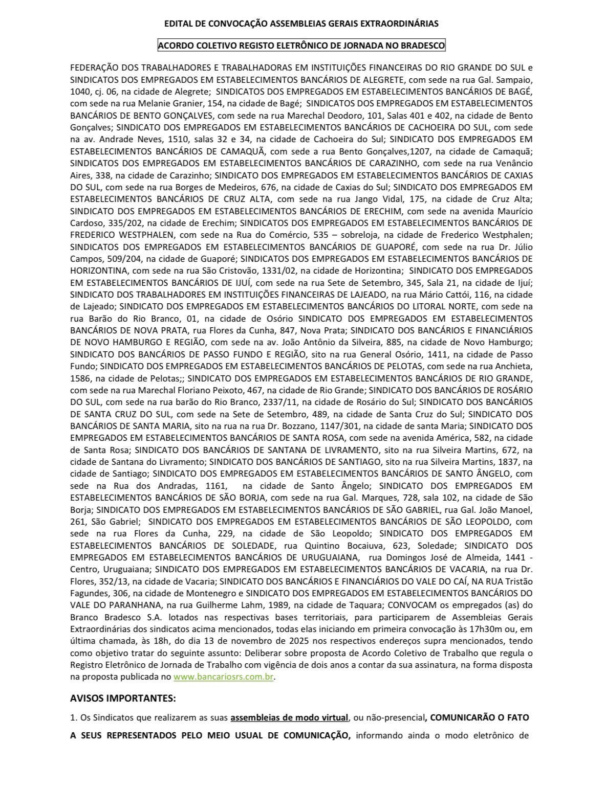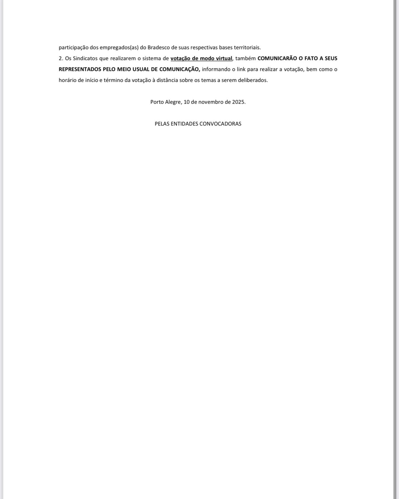 Bancários do Bradesco deliberam sobre acordo do ponto eletrônico
